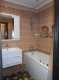 Наливной 3 D пол присутствует также и в ванной комнате, так как высокая герметичность позволяет ему под воздействием воды не деформироваться. Эти характеристики позволяют эксплуатировать наливной пол очень долго, около 50-ти лет при значительной нагрузке. Гидромассажная ванна очень полезное и функциональное устройство, которое способно обеспечить Вам приятный отдых и расслабляющие массажные процедуры после тяжелого трудового дня, отделка стен бежевой плиткой создает гармоничную и спокойную атмосферу. Современная сантехника не только вписывается в общий дизайн, но и максимально эргономична и функциональна.