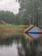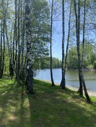 Участок на берегу рыбного озера, окружен рощей, подъезд — уверенная грунтовая дорога.